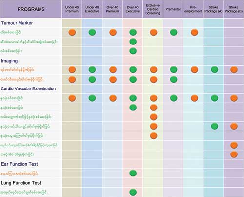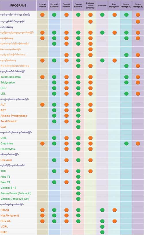 – ကျန်းမာရေး စစ်ဆေးမှု လုပ်ငန်းဆောင်တာများ ဆောင်ရွက်ရန် အချိန် (၃)နာရီခန့်ကြာနိုင်ပါသည်။ (မိမိစစ်ဆေးမည့် အစီအစဉ် ကိုလိုက်၍ ကြာမြင့်ချိန် ကွဲပြားနိုင်ပါသည်။)